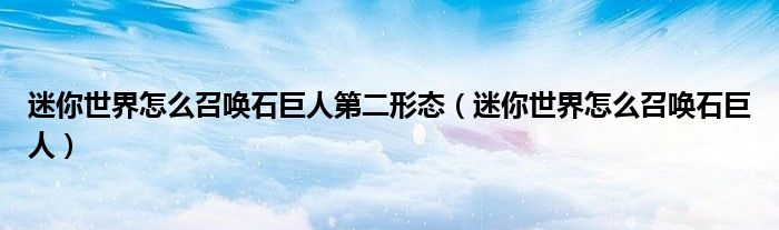 大家好,雨雨来为大家解答以上问题,迷你世界怎么召唤石巨人第二形态,迷你世界怎么召唤石巨人很多人还不知道,现在让我们一起来看看吧!
