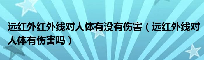 大家好,linda来为大家解答以上的问题。远红外红外线对人体有没有伤害,远红外线对人体有伤害吗很多人还不知道,现在让我们一起来看看吧!