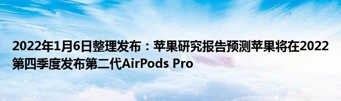 2022年1月6日整理发布:苹果研究报告预测苹果将在2022第四季度发布第二代AirPods Pro
