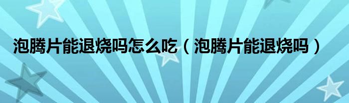 泡腾片能退烧吗怎么吃(泡腾片能退烧吗)