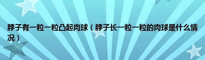 大家好,linda来为大家解答以上的问题。脖子有一粒一粒凸起肉球,脖子长一粒一粒的肉球是什么情况很多人还不知道,现在让我们一起来看看吧!