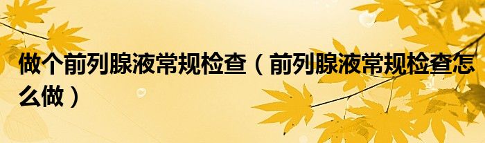 大家好,linda来为大家解答以上的问题。做个前列腺液常规检查,前列腺液常规检查怎么做很多人还不知道,现在让我们一起来看看吧!