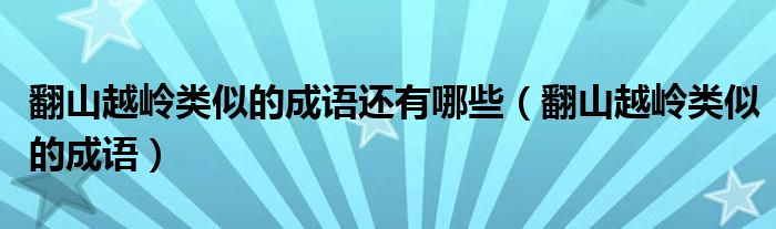 大家好,小晋来为大家解答以下问题,关于翻山越岭类似的成语还有哪些,翻山越岭类似的成语很多人还不知道,今天让我们一起来看看吧!