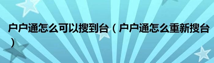 大家好,小晋来为大家解答以下问题,关于户户通怎么可以搜到台,户户通怎么重新搜台很多人还不知道,今天让我们一起来看看吧!