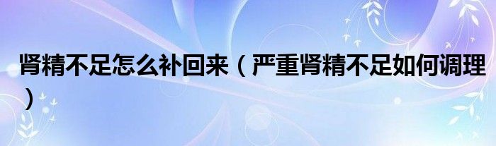 大家好,linda来为大家解答以上的问题。肾精不足怎么补回来,严重肾精不足如何调理很多人还不知道,现在让我们一起来看看吧!