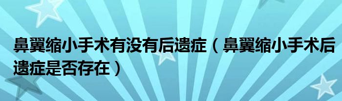 大家好,linda来为大家解答以上的问题。鼻翼缩小手术有没有后遗症,鼻翼缩小手术后遗症是否存在很多人还不知道,现在让我们一起来看看吧!