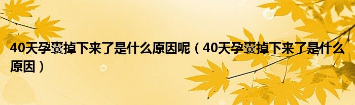 大家好,linda来为大家解答以上的问题。40天孕囊掉下来了是什么原因呢,40天孕囊掉下来了是什么原因很多人还不知道,现在让我们一起来看看吧!