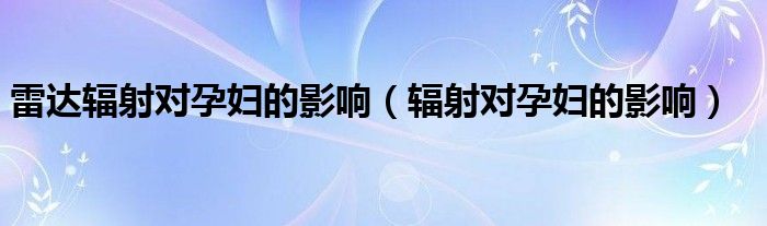 大家好,linda来为大家解答以上的问题。雷达辐射对孕妇的影响,辐射对孕妇的影响很多人还不知道,现在让我们一起来看看吧!