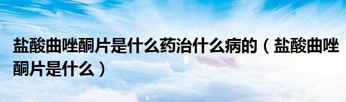 大家好,linda来为大家解答以上的问题。盐酸曲唑酮片是什么药治什么病的,盐酸曲唑酮片是什么很多人还不知道,现在让我们一起来看看吧!