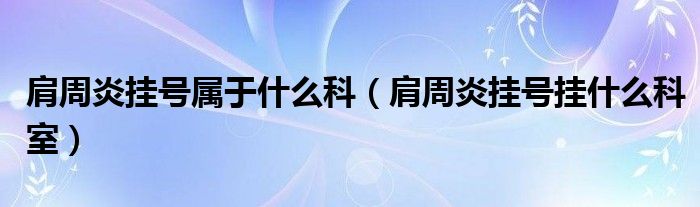 大家好,linda来为大家解答以上的问题。肩周炎挂号属于什么科,肩周炎挂号挂什么科室很多人还不知道,现在让我们一起来看看吧!