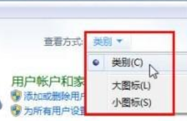 除了“类别”,Win7控制面板还提供了“大图标”和“小图标”的查看方式,只需点击控制面板右上角“查看方式”旁边的小箭头,从中选择自己喜欢的形式就可以了。