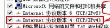 在网卡对应的“本地连接”选择“属性”→“网络”→“Internet协议版本4(TCP/IPv4)”,点击“属性”:
