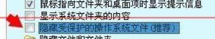 开始→控制面板→文件夹选项→查看→去掉【隐藏受保护的操作系统文件】前的对勾,选中【隐藏文件和文件夹】→【显示所有文件和文件夹】→确定