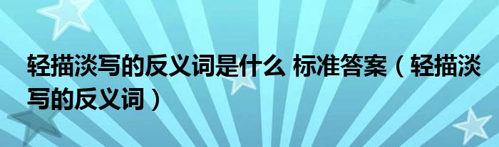 大家好,小晋来为大家解答以下问题,关于轻描淡写的反义词是什么 标准答案,轻描淡写的反义词很多人还不知道,今天让我们一起来看看吧!