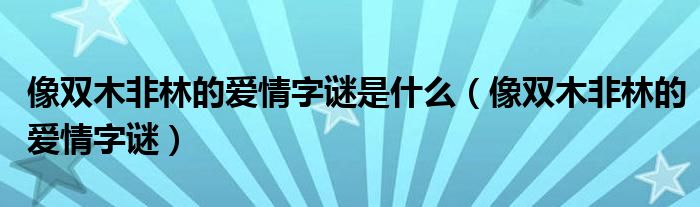 大家好,小晋来为大家解答以下问题,关于像双木非林的爱情字谜是什么,像双木非林的爱情字谜很多人还不知道,今天让我们一起来看看吧!