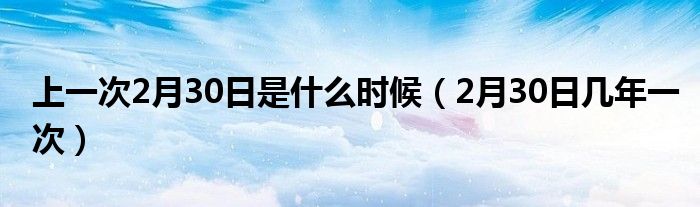大家好,小晋来为大家解答以下问题,关于上一次2月30日是什么时候,2月30日几年一次很多人还不知道,今天让我们一起来看看吧!
