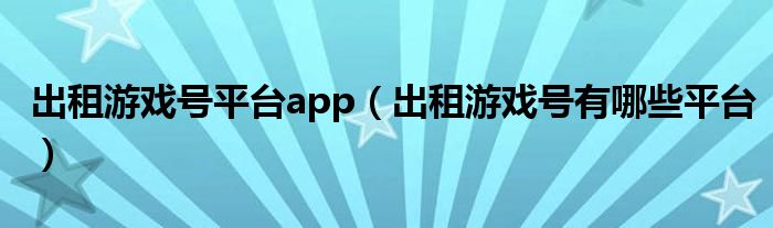 出租游戏号平台app,出租游戏号有哪些平台很多人还不知道,乐乐来为大家解答以上问题,现在让我们一起来看看吧!