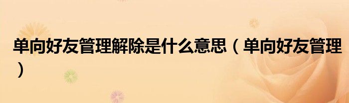 单向好友管理解除是什么意思,单向好友管理很多人还不知道,乐乐来为大家解答以上问题,现在让我们一起来看看吧!
