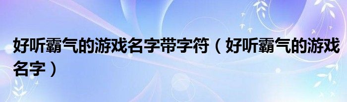 好听霸气的游戏名字带字符,好听霸气的游戏名字很多人还不知道,乐乐来为大家解答以上问题,现在让我们一起来看看吧!