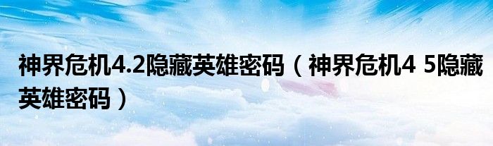 神界危机4.2隐藏英雄密码,神界危机4 5隐藏英雄密码很多人还不知道,乐乐来为大家解答以上问题,现在让我们一起来看看吧!
