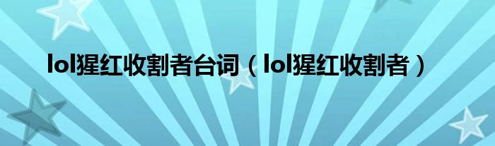 lol猩红收割者台词,lol猩红收割者很多人还不知道,乐乐来为大家解答以上问题,现在让我们一起来看看吧!