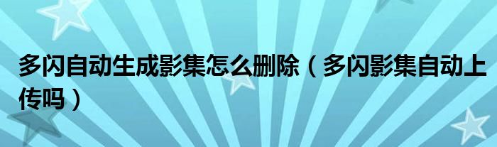 大家好,跳跳为你解答以上问题。多闪自动生成影集怎么删除,多闪影集自动上传吗这个问题很多人还不知道,现在让我们一起来看看吧!