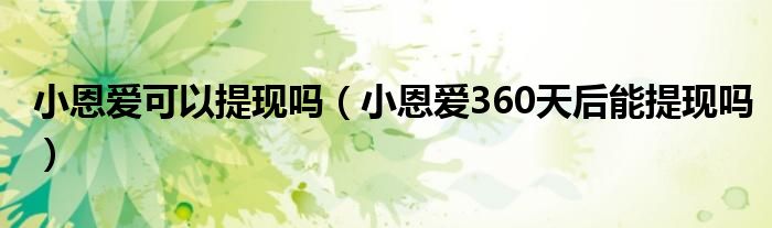 大家好,跳跳为你解答以上问题。小恩爱可以提现吗,小恩爱360天后能提现吗这个问题很多人还不知道,现在让我们一起来看看吧!