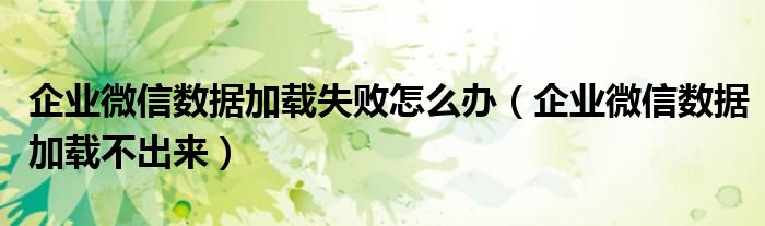 解答:1、企业微信数据加载不出来的理由是: