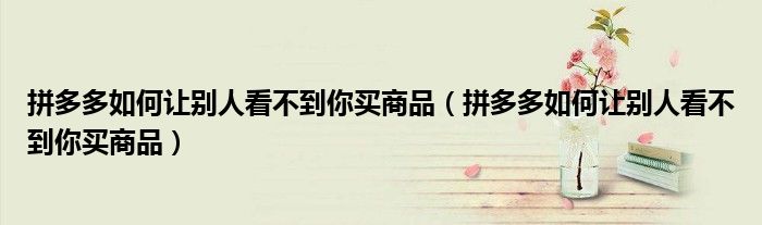 大家好,跳跳为你解答以上问题。拼多多如何让别人看不到你买商品,拼多多如何让别人看不到你买商品这个问题很多人还不知道,现在让我们一起来看看吧!
