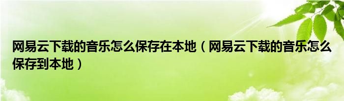 大家好,跳跳为你解答以上问题。网易云下载的音乐怎么保存在本地,网易云下载的音乐怎么保存到本地这个问题很多人还不知道,现在让我们一起来看看吧!