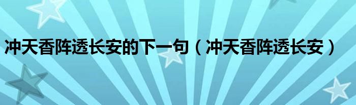 大家好,小晋来为大家解答以下问题,关于冲天香阵透长安的下一句,冲天香阵透长安很多人还不知道,今天让我们一起来看看吧!