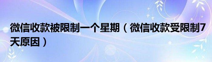 大家好,小晋来为大家解答以下问题,关于微信收款被限制一个星期,微信收款受限制7天原因很多人还不知道,今天让我们一起来看看吧!