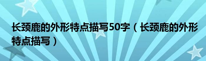 大家好,小晋来为大家解答以下问题,关于长颈鹿的外形特点描写50字,长颈鹿的外形特点描写很多人还不知道,今天让我们一起来看看吧!