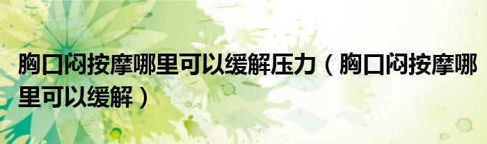 大家好,linda来为大家解答以上的问题。胸口闷按摩哪里可以缓解压力,胸口闷按摩哪里可以缓解很多人还不知道,现在让我们一起来看看吧!