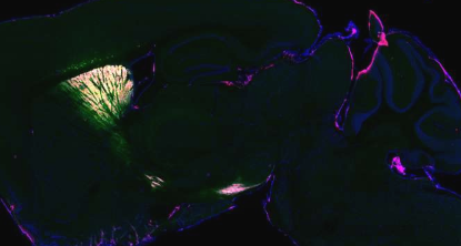 “病毒本质上是我们传递的信息,”科佐罗维茨基说。“在这种情况下,消息携带了这种特殊的大豆酶。然后,在另一条消息中,我们发送了绿色荧光蛋白,向我们显示哪些神经元被标记。如果神经元是绿色的,那么我们知道大豆酶在那些神经元中表达神经元。”