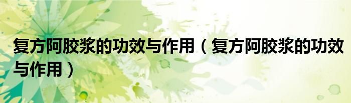 复方阿胶浆的功效与作用(复方阿胶浆的功效与作用)
