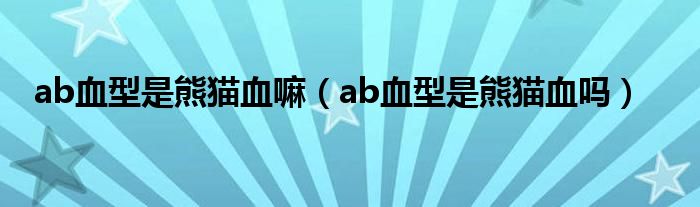 大家好,linda来为大家解答以上的问题。ab血型是熊猫血嘛,ab血型是熊猫血吗很多人还不知道,现在让我们一起来看看吧!