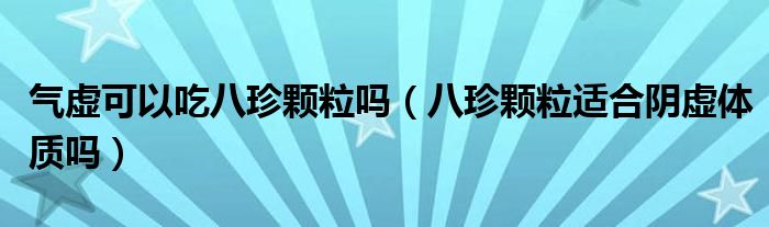大家好,linda来为大家解答以上的问题。气虚可以吃八珍颗粒吗,八珍颗粒适合阴虚体质吗很多人还不知道,现在让我们一起来看看吧!