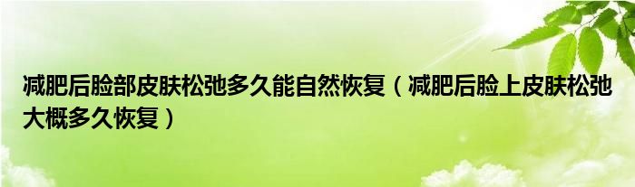 1、减肥后脸上的皮肤松弛主要是因为皮下脂肪快速流失,导致皮肤失去支撑而下垂。经过一段时间的饮食调理,皮肤松弛的症状会在1-2个月内慢慢恢复。