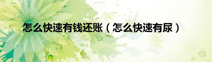 大家好,linda来为大家解答以上的问题。怎么快速有钱还账,怎么快速有尿很多人还不知道,现在让我们一起来看看吧!