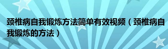 大家好,linda来为大家解答以上的问题。颈椎病自我锻炼方法简单有效视频,颈椎病自我锻炼的方法很多人还不知道,现在让我们一起来看看吧!