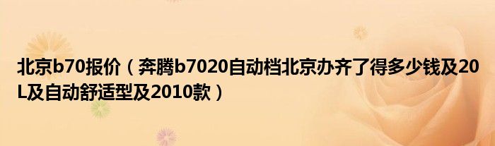 大家好,小常来为大家解答以下问题,对于北京b70报价,奔腾b7020自动档北京办齐了得多少钱及20L及自动舒适型及2010款很多人还不知道,今天让我们一起来看看吧!