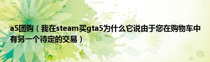 大家好,小常来为大家解答以下问题,对于a5团购,我在steam买gta5为什么它说由于您在购物车中有另一个待定的交易很多人还不知道,今天让我们一起来看看吧!