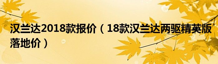 大家好,小常来为大家解答以下问题,对于汉兰达2018款报价,18款汉兰达两驱精英版落地价很多人还不知道,今天让我们一起来看看吧!