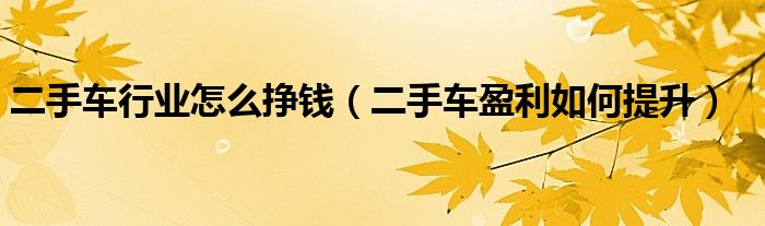 1,二手车盈利如何提升 :二手车盈利提升的话 个人认为主要是需要二手车经销商进一步拓宽市场,加大宣传,同时针对细分市场有针对性的进行营销,此外与二手车相关的一些服务拓展也是二手车盈利提升的重要途径。