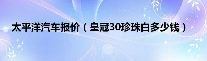 大家好,小常来为大家解答以下问题,对于太平洋汽车报价,皇冠30珍珠白多少钱很多人还不知道,今天让我们一起来看看吧!