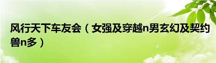 大家好,小常来为大家解答以下问题,对于风行天下车友会,女强及穿越n男玄幻及契约兽n多很多人还不知道,今天让我们一起来看看吧!