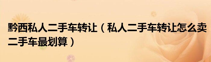 大家好,小常来为大家解答以下问题,对于黔西私人二手车转让,私人二手车转让怎么卖二手车最划算很多人还不知道,今天让我们一起来看看吧!