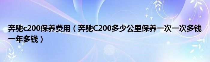 这个要看你一年开多少公里了,一般奔驰 C200的A保养是现在是1100-1500元每次,B保养在1800-2400元左右,还有A1,B1,A2,B2等不同的保养,不同的保养项目有不同的价格,4S店不同,保养的价格也不同。一般奔驰的平均保养在1500元-1800元每次,保养里程为1万公里(奔驰公司推荐里程)