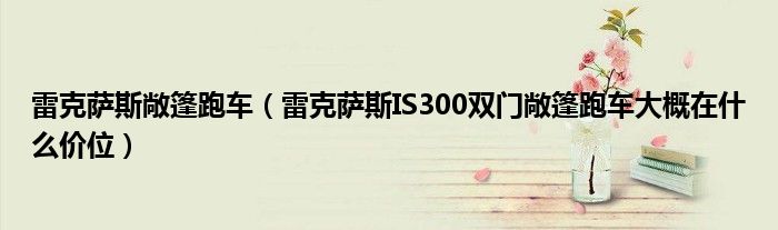 大家好,小常来为大家解答以下问题,对于雷克萨斯敞篷跑车,雷克萨斯IS300双门敞篷跑车大概在什么价位很多人还不知道,今天让我们一起来看看吧!